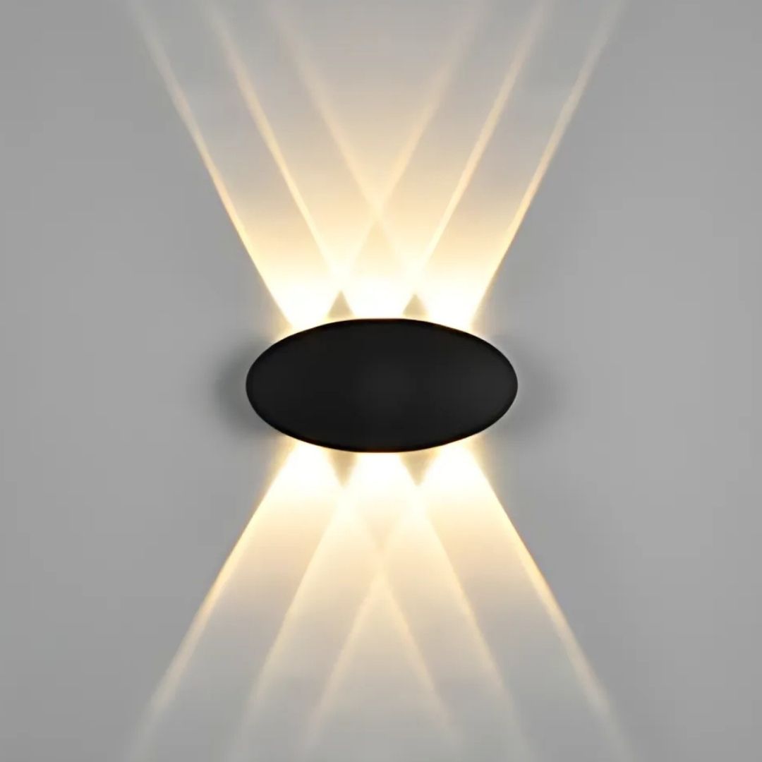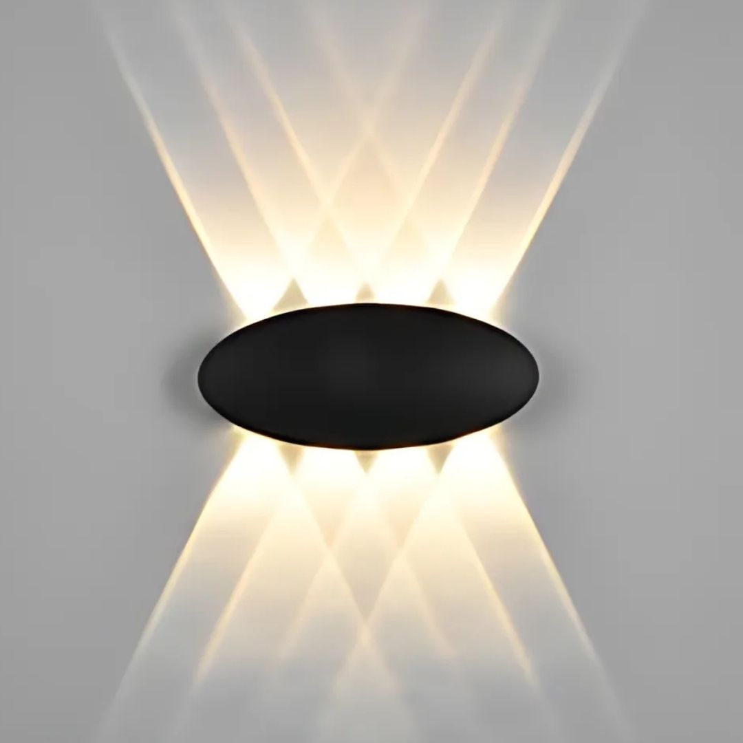 This wall light features a modern matte black casing with a distinctive triple-arched silhouette. It casts elegant, symmetrical beams both upward and downward, creating a beautiful diamond-shaped lighting pattern. Stylish, artistic, and ideal for ambient lighting.