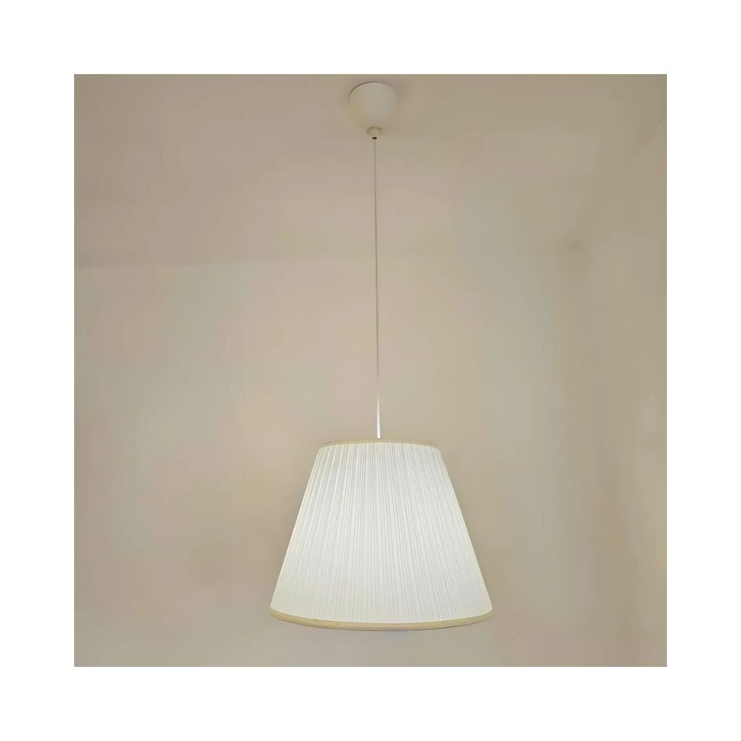 This pendant light features a classic pleated fabric lampshade in an ivory-white tone, evoking warmth and softness. The flared conical shape gives it a timeless elegance, perfect for creating a cozy and inviting ambiance.